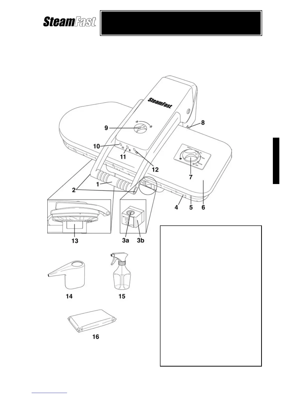 Los siguientes articulos y accesorios están incluídos con su plancha a vapor. Inspeccione