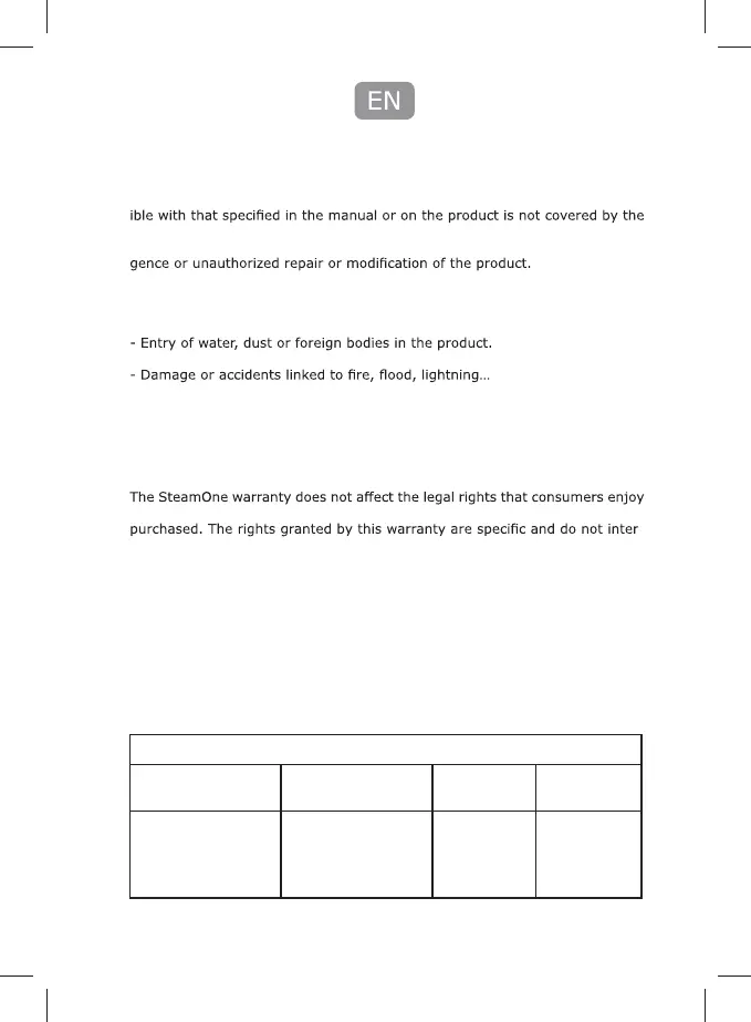 - Nor does the SteamOne warranty cover damage that is the result of negli-