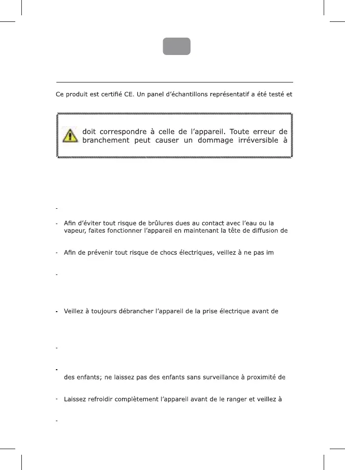 Ne dirigez pas la vapeur vers des personnes ou des animaux, ne défrois-