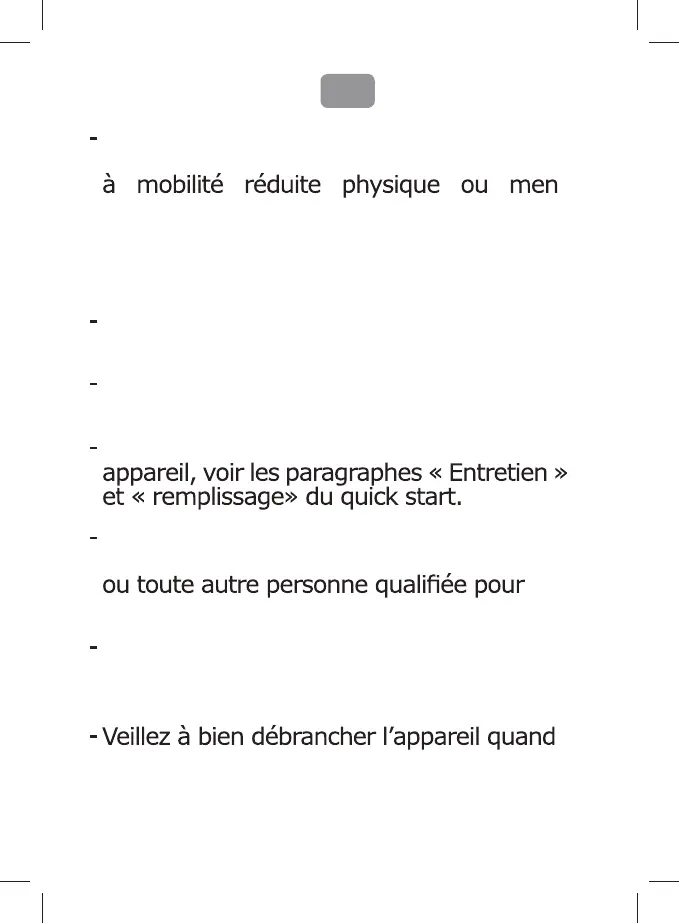 L’entretien de l’appareil ne doit pas être fait