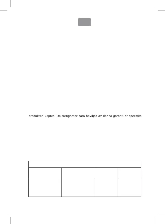 - Garantin gäller inte vid problem med förpackning eller transport av produk-