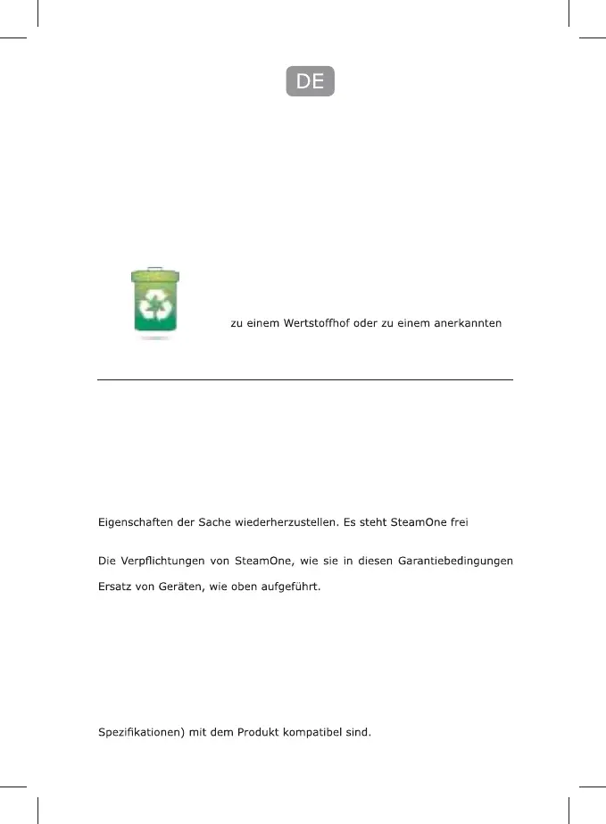 - Die Garantie von SteamOne gilt nur, wenn die lokalen Standards