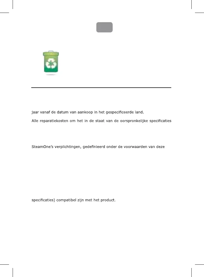 - De SteamOne garantie is alleen geldig op vertoon van een bewijs van