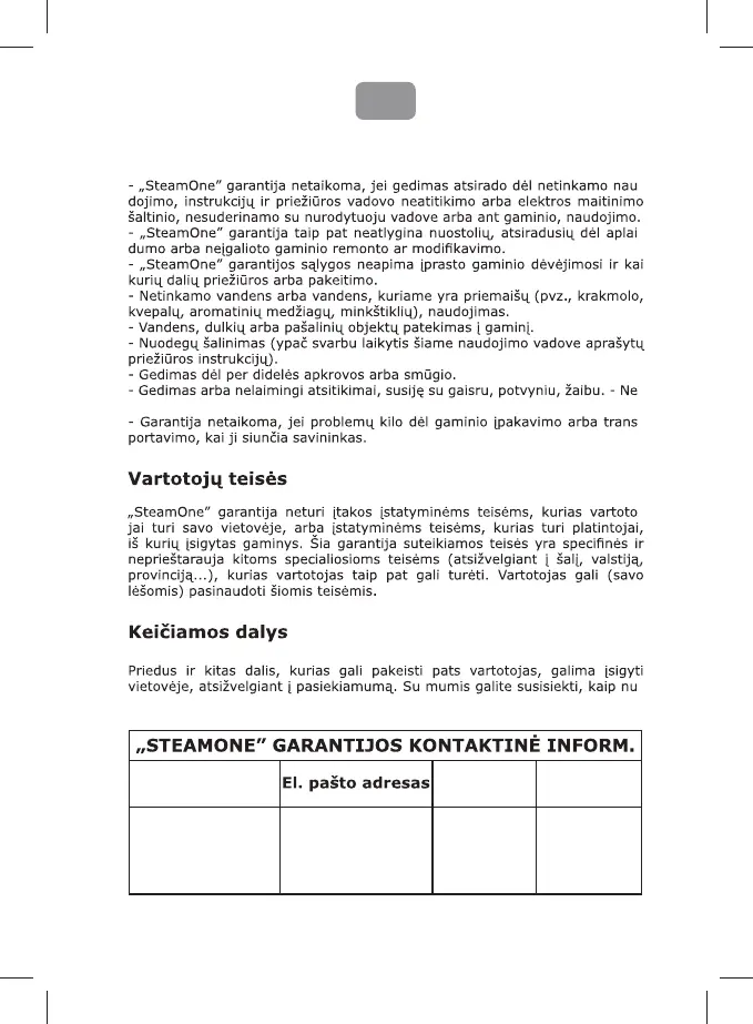 „SteamOne” garantija netaikoma toliau nurodytais atvejais: