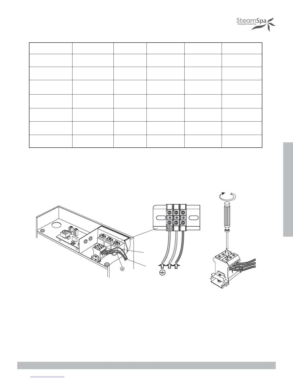 The data provided above is for 240V single-phased motors. Install an independent circuit breaker between supply line and steam