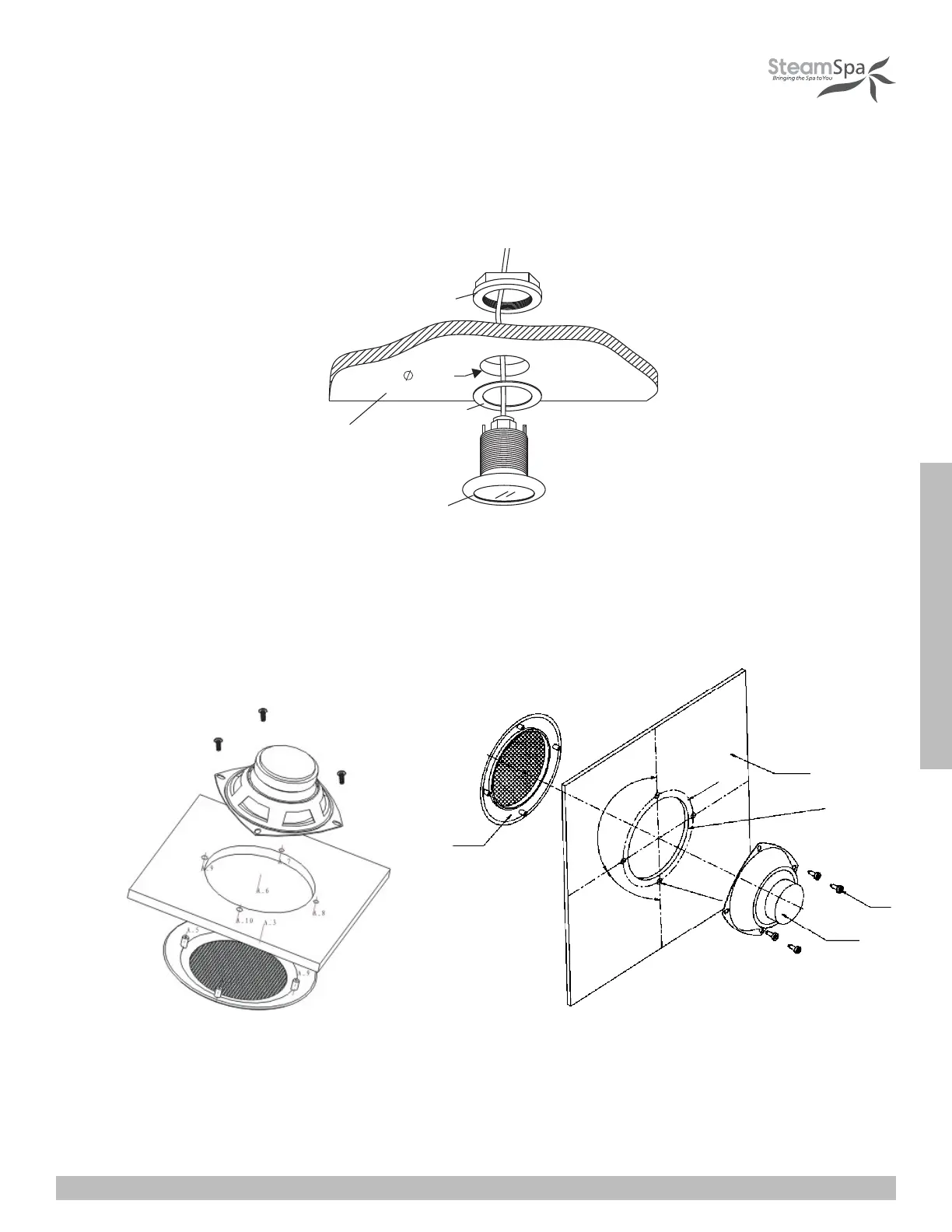 1. Chose a proper place on ceiling inside the steam room.