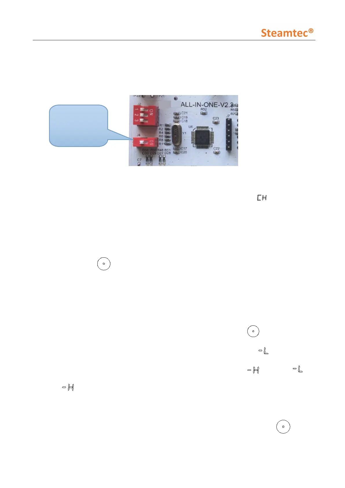 steam room temperature higher than 60°C, controller display shows “ ”. Under “ ”