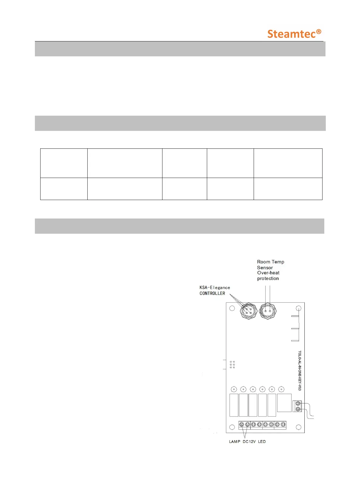 Attention:The controller and central control box MUST be installed OUTSIDE the sauna room.