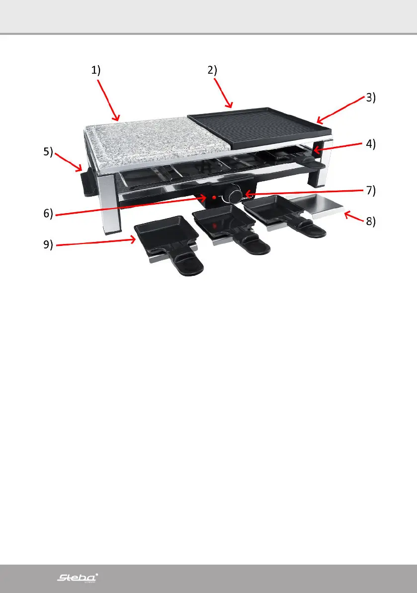 ∙ Do not place empty pans on the hot grill plate or the raclette level so that the coa-
