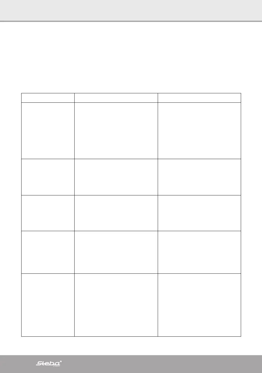 Tak fordi du købte et produkt fra Steba. Tabellen nedenfor giver hjælp til problemer,