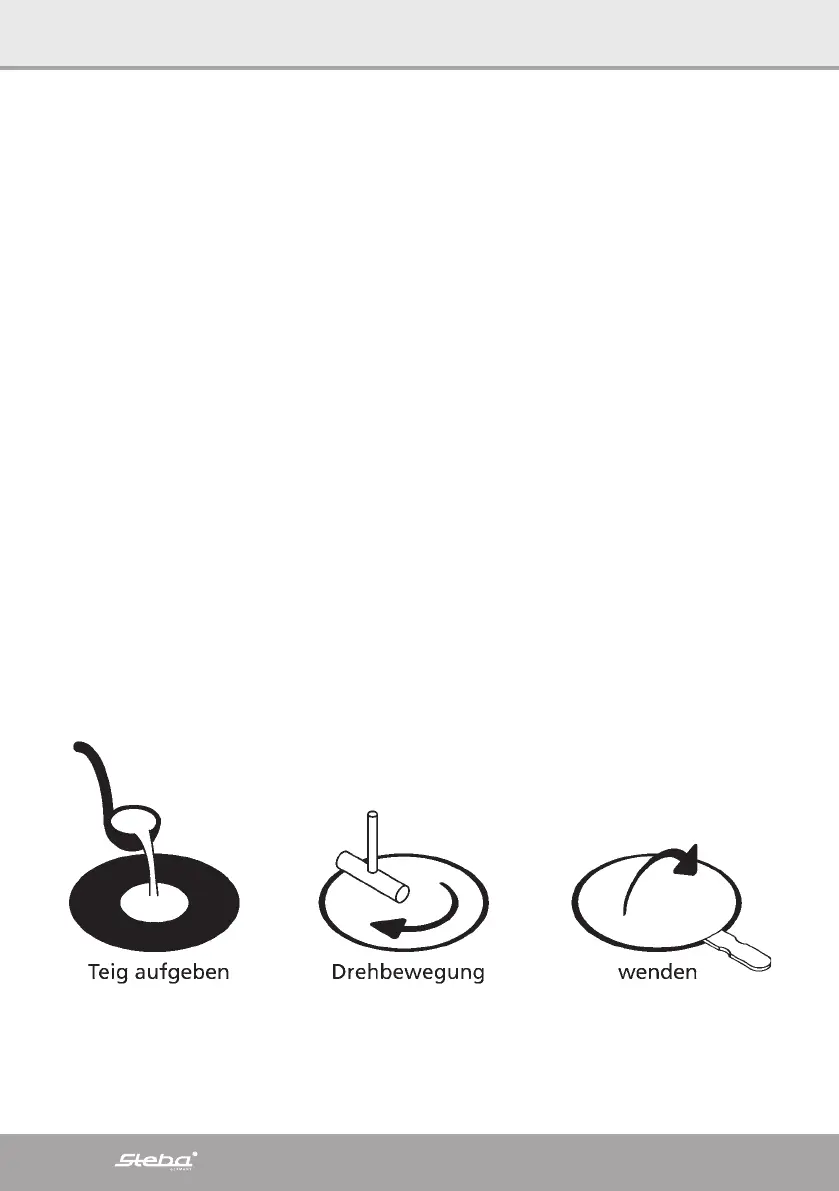 ∙ Wenn der Crepes fertig ist, diesen mit einem Holz- oder Plastikspatel herausneh-