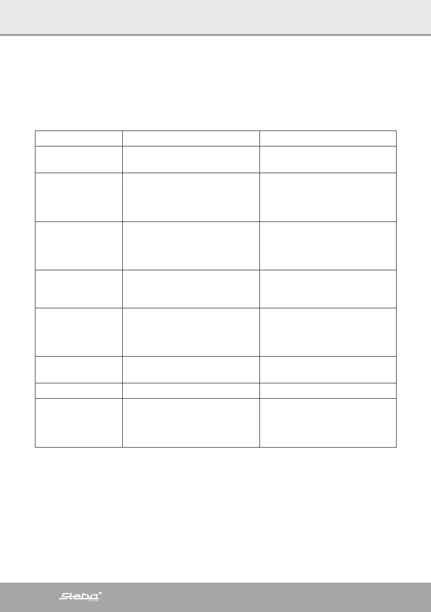 Thank you for buying this STEBA product. The following table will help you with pro-