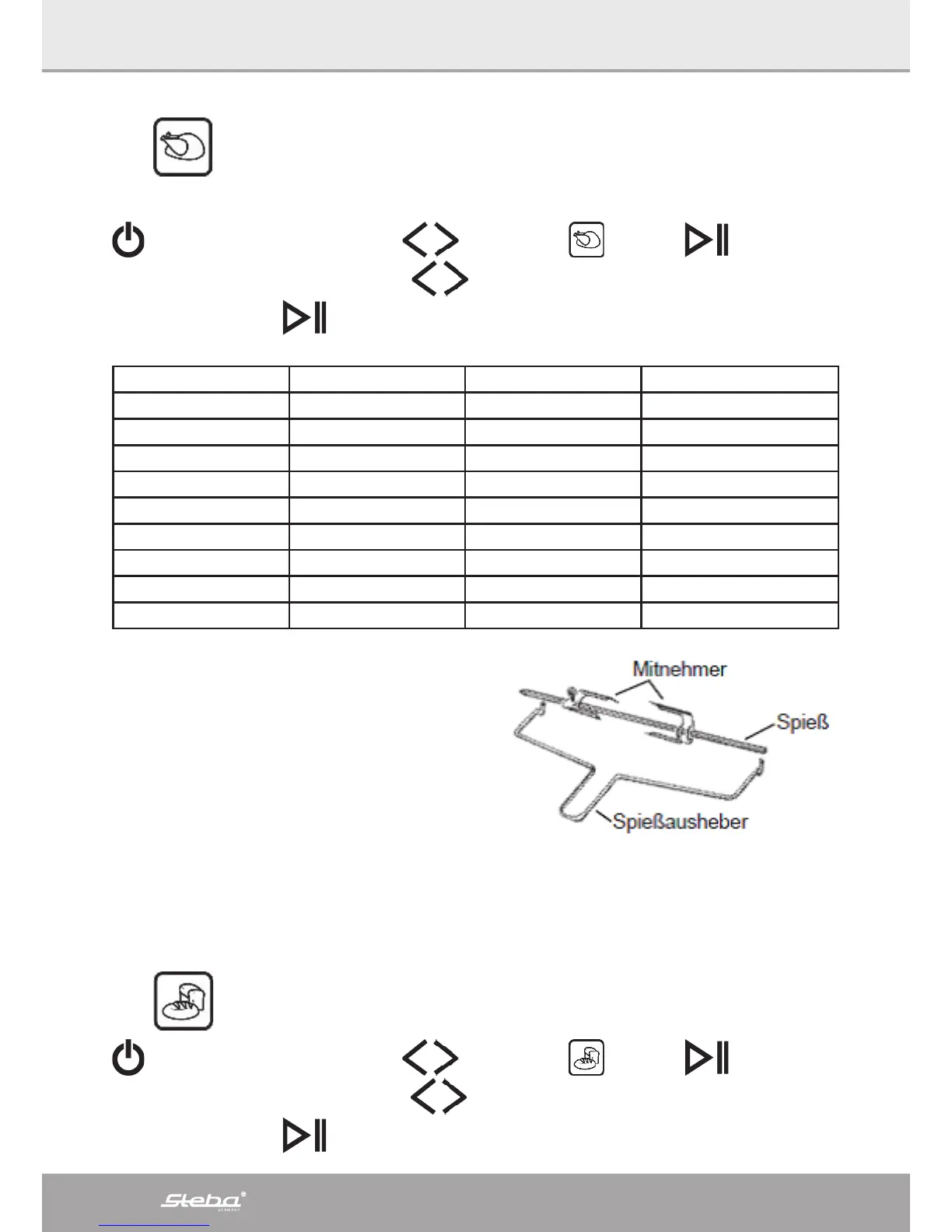 (Drehspieß nur bei DG 40!)