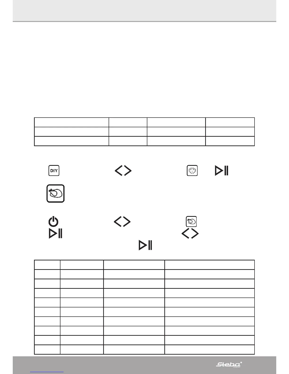 Code Time in min. Temperature in °C Heat