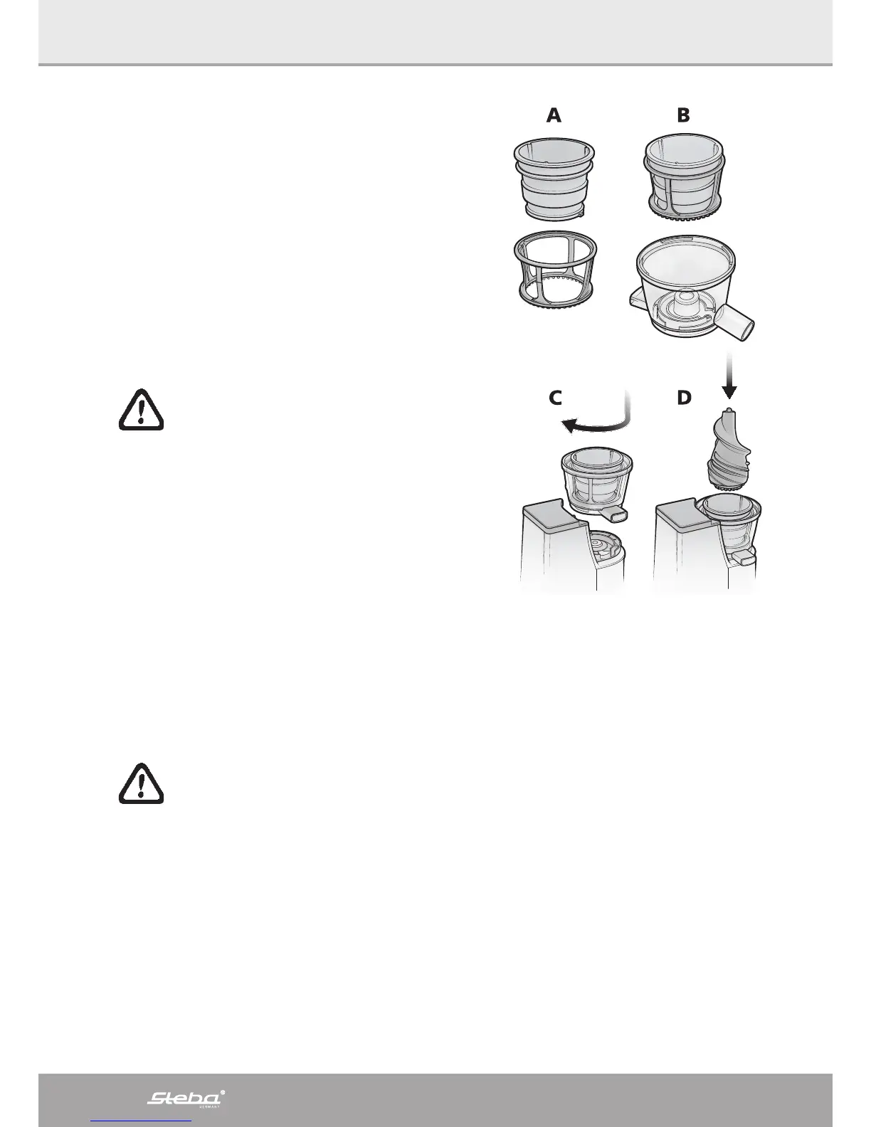 ∙ Niemals Lebensmittel mit harten Kernen oder Schalen in den Füllschacht geben, da
