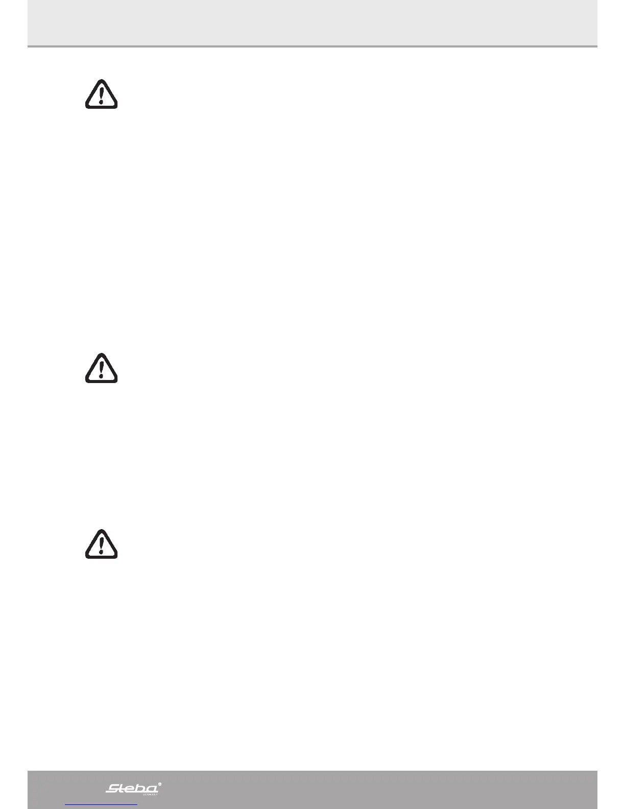 ∙ Never use the unit on carpet or tablecloth (viny1) or any other
