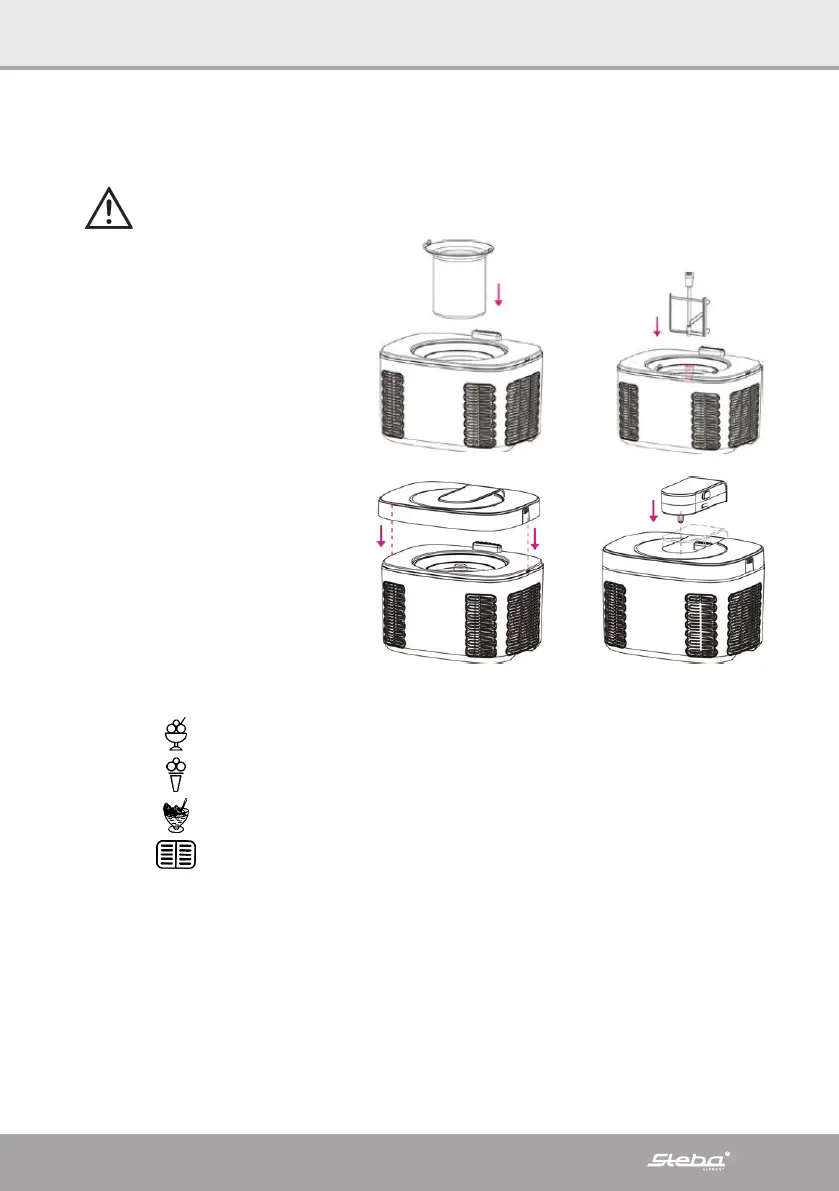 ∙ Den ydre væg fra isbeholderen skal være tør, ellers fryser beholderen fast