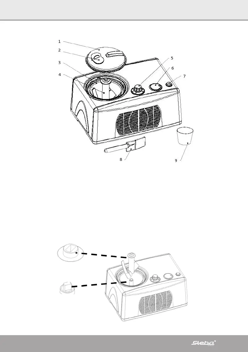 7) Tænd – og slukknap 8) Skraber 9) Målebæger