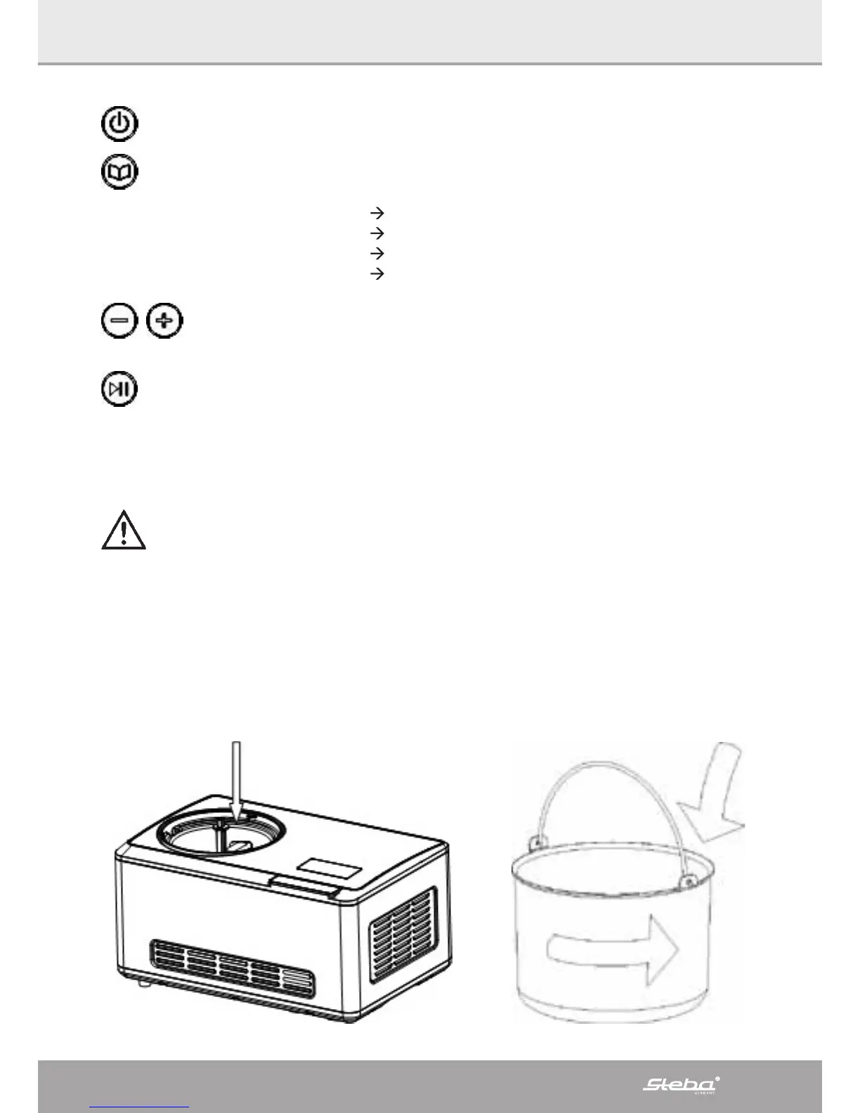 ∙ Setzen Sie den Eisbehälter ein und stecken Sie den Rührarm auf die Achse im Eisbe-