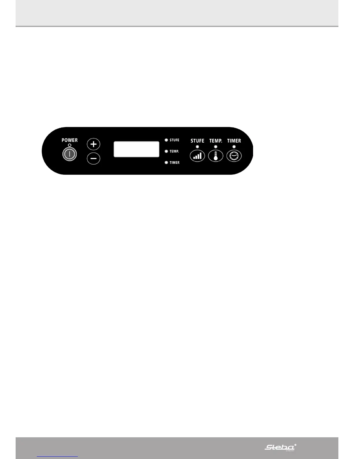Met de toetsen +/- kan men met trappen van 20° de temperatuur wijzigen.