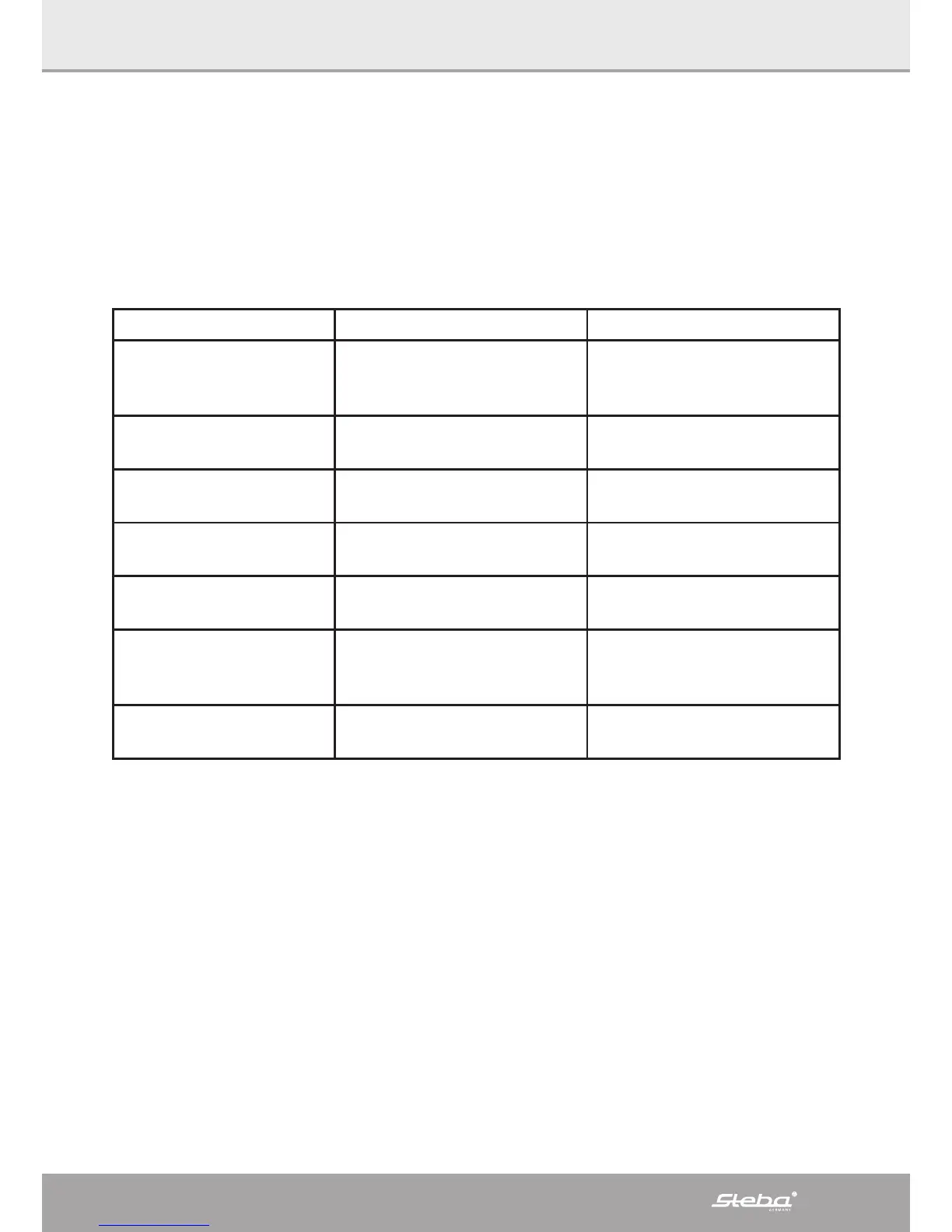 Thank you for buying this STEBA product. The following table will help you with