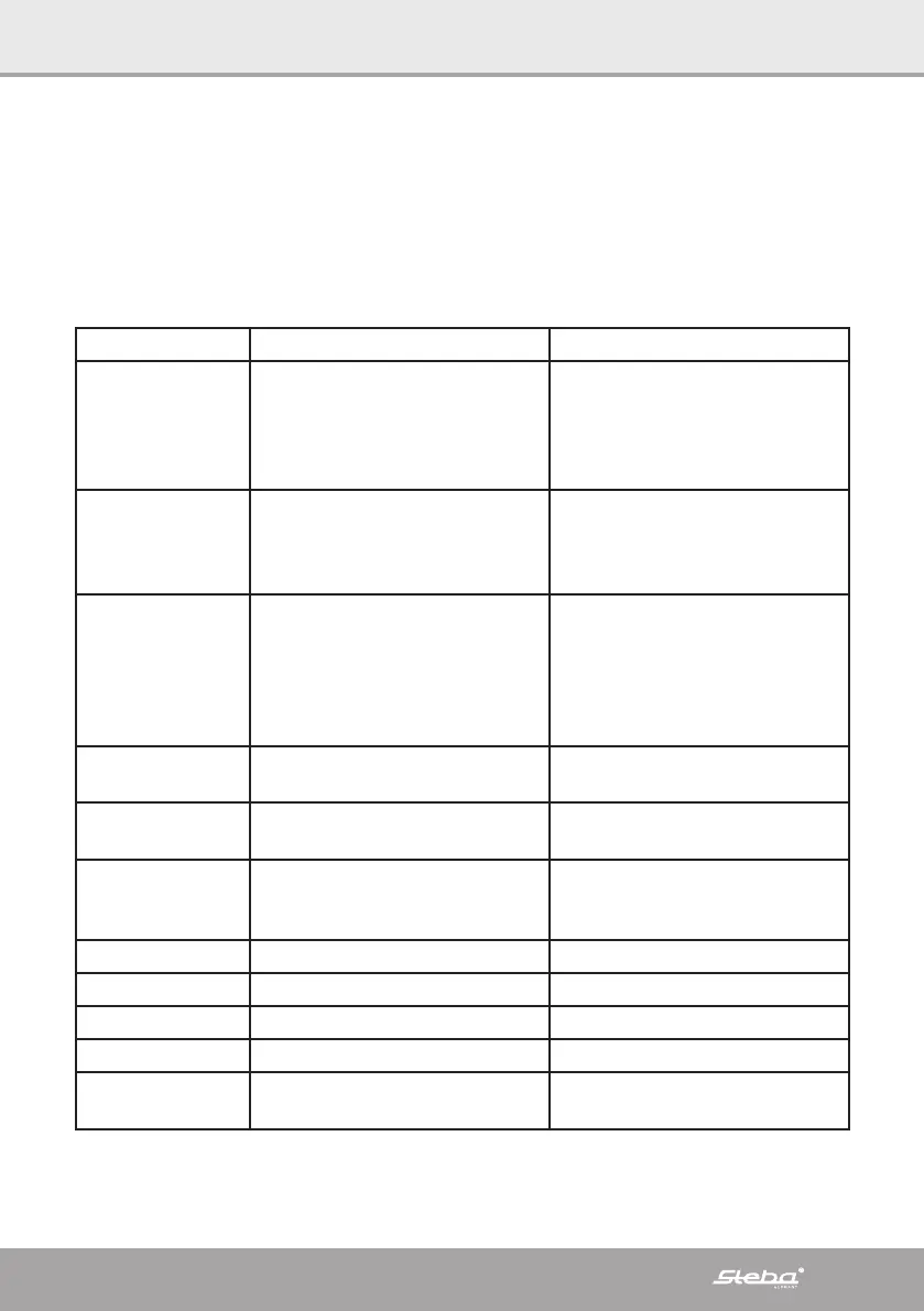 tabel zal u helpen met problemen die zich kunnen voordoen bij het gebruik van het