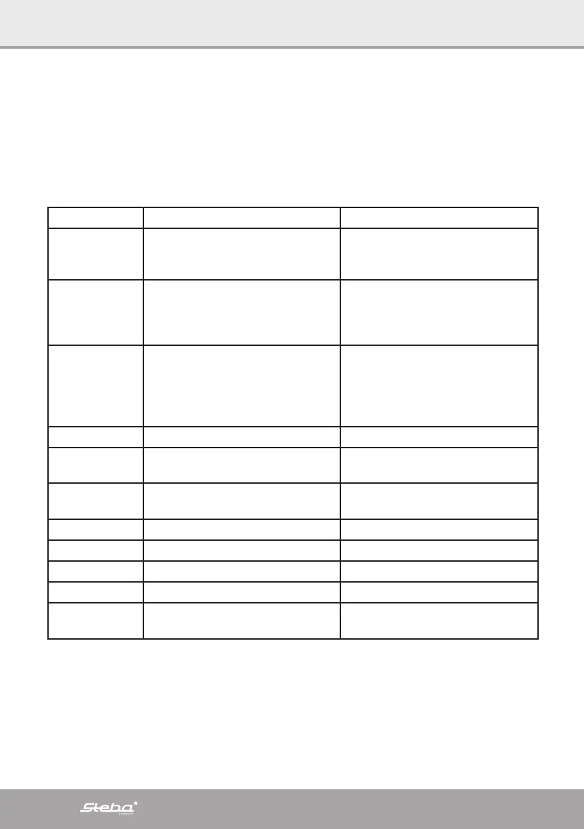 Tak fordi du købte et produkt fra Steba. Tabellen nedenfor giver hjælp til