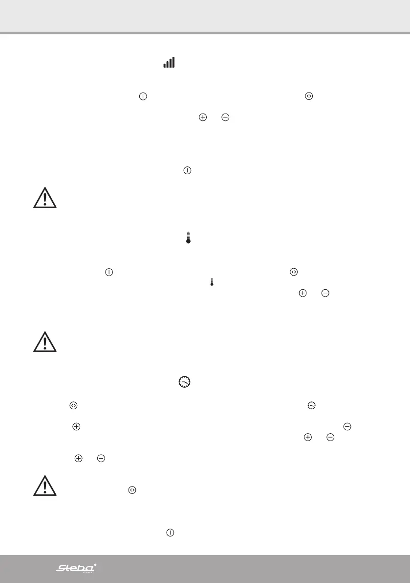 Réglez comme décrit ci-dessus la température et la puissance. Effleurez la touche