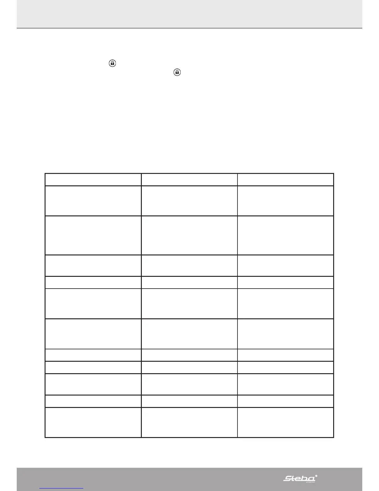 Thank you for buying this high-quality STEBA product. The following table will help