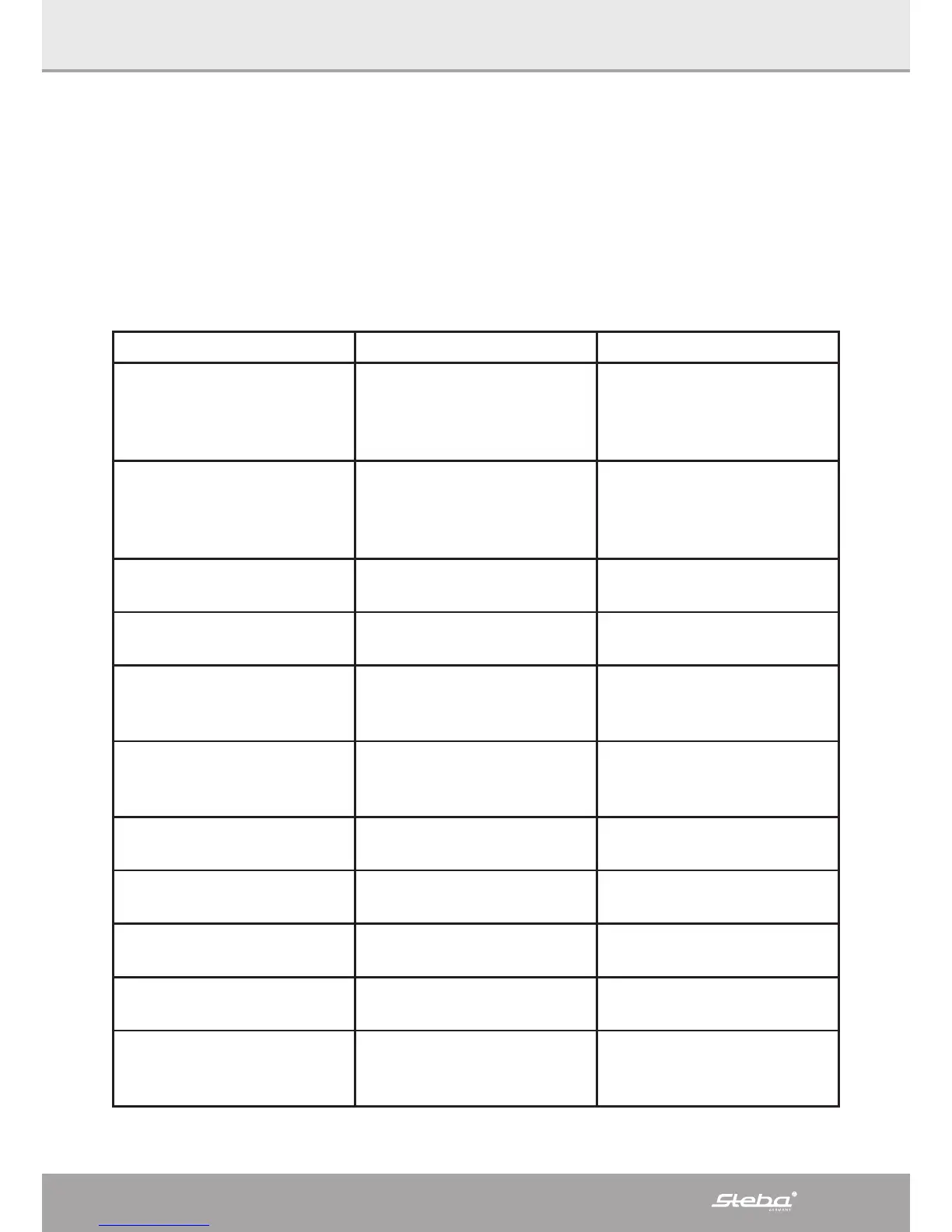 Merci d’avoir acheté un produit STEBA de qualité. Le tableau ci-dessous donne une