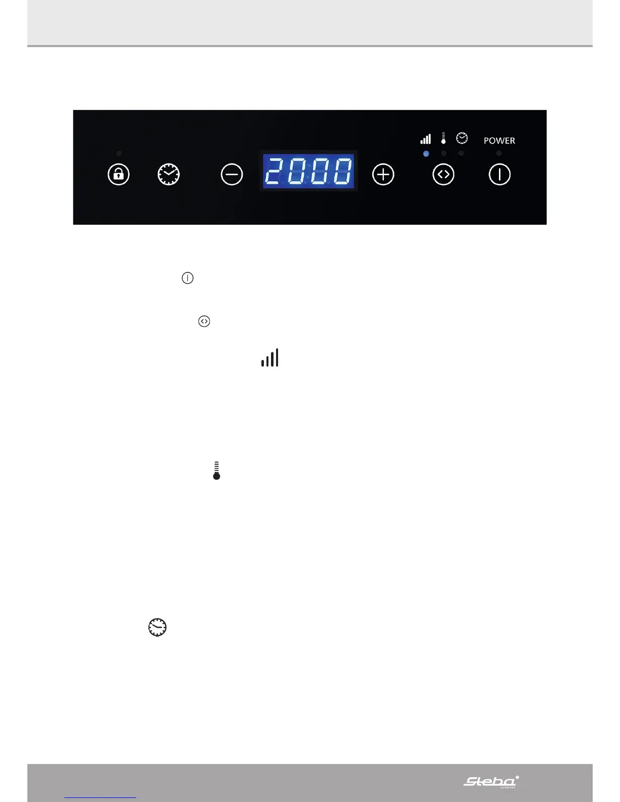o Mit den +/- Tasten die Leistung von 200 bis 2.000 Watt in Schritten von 200