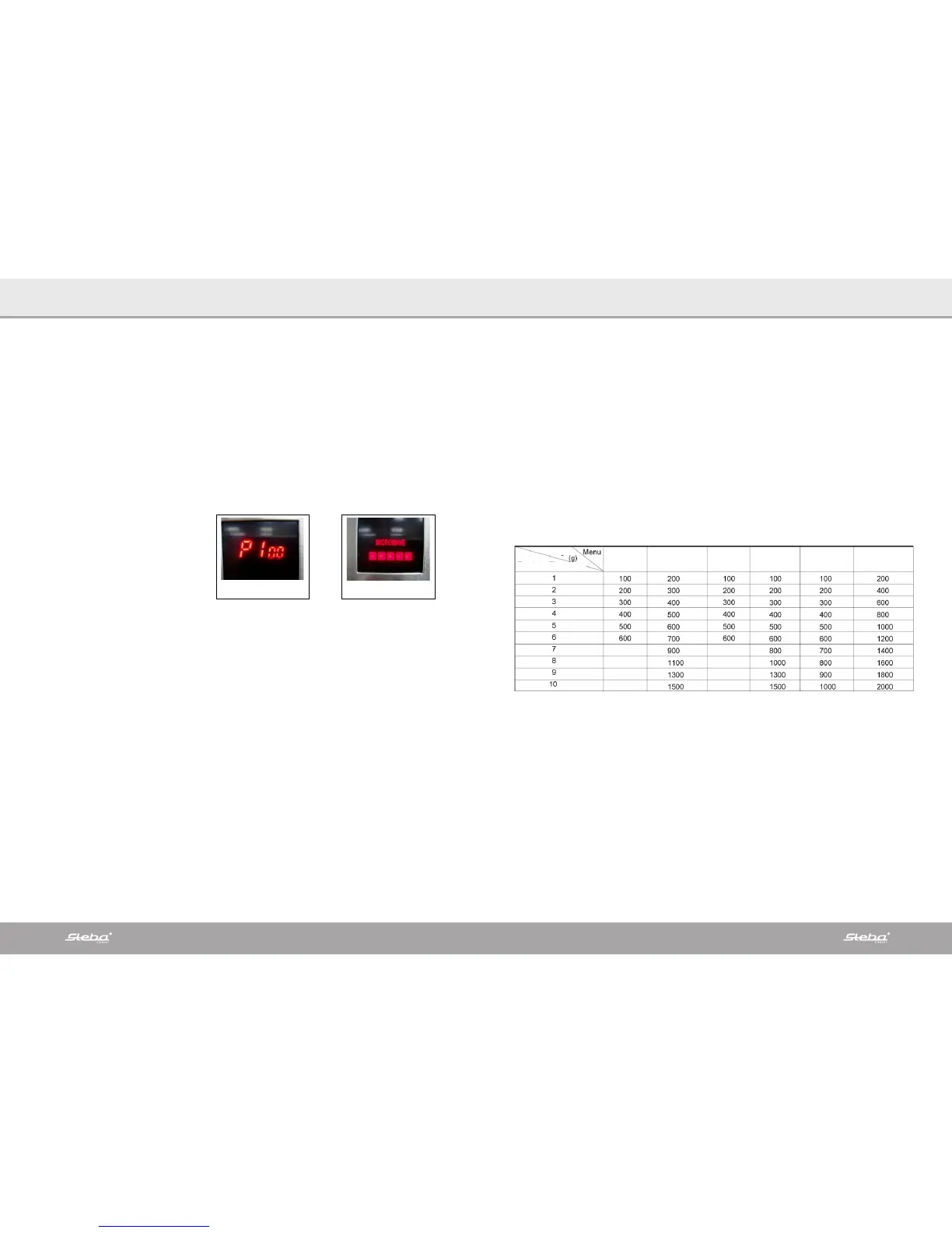 menus sont utiles, si vous désirez cuire des produits prédéfinis d’après leur type et