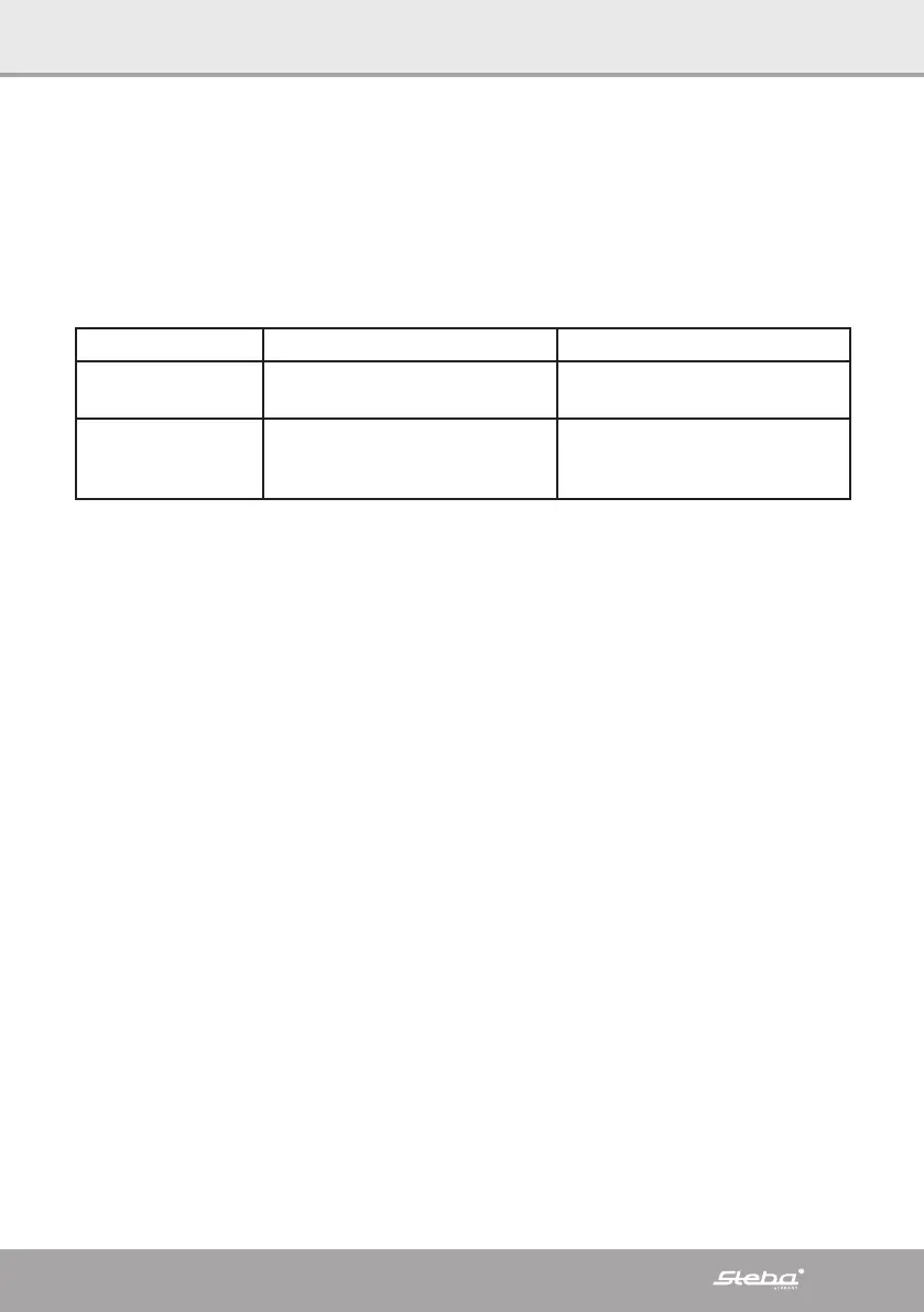vielen Dank für den Kauf eines STEBA-Produktes. Nachfolgende Tabelle gibt Ihnen