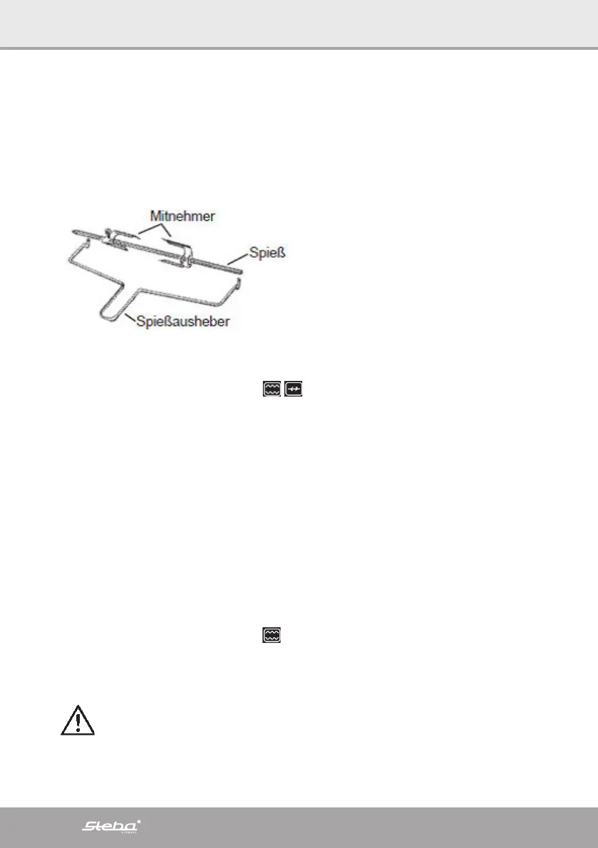 in het midden van de draaispit geplaatst is. Plaats het spit met het vlees op de