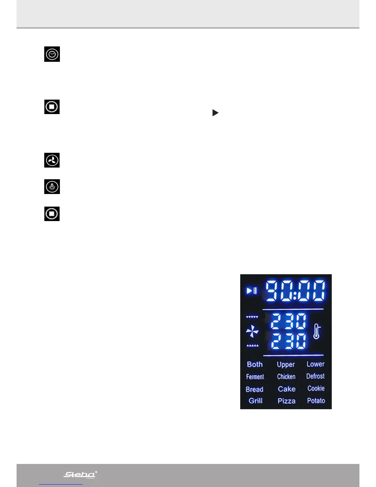Child lock: press the start/stop button for 3 seconds, the display shows