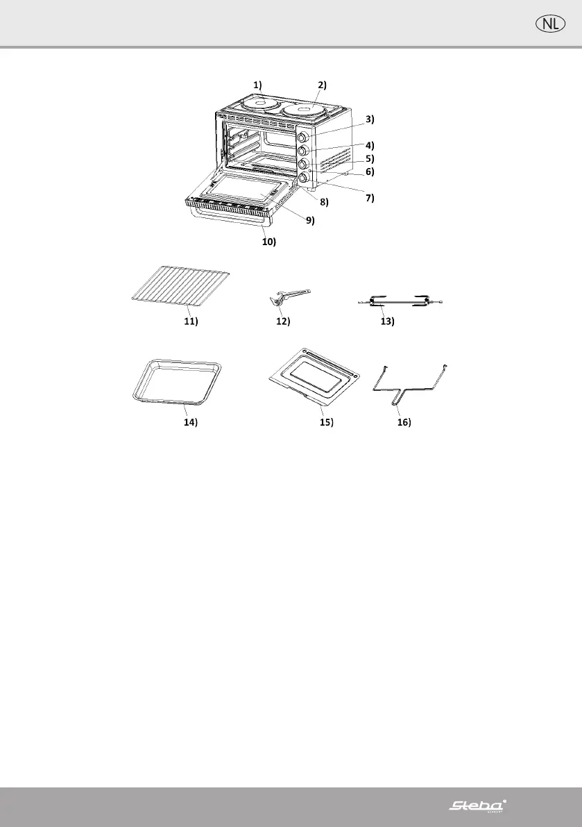 Onderste niveau: voor bakken op lage temperatuur, inschuifhoogte voor de