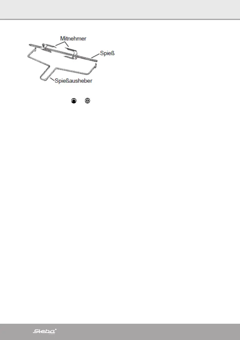∙ Use the spit handle and the pan handle to remove the ready done food.