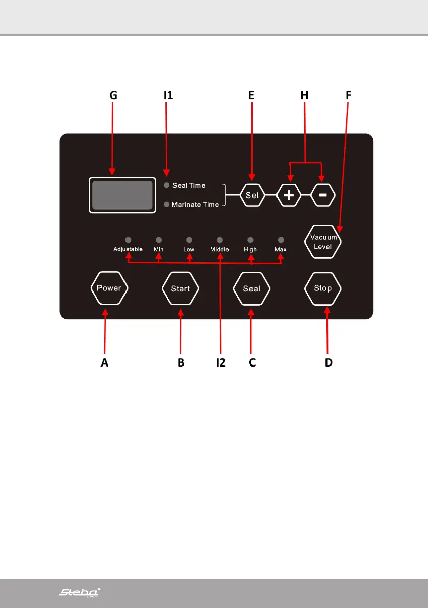 ∙ Um einen Vakuumierprozess zu beenden muss die Power-Taste gedrückt werden.