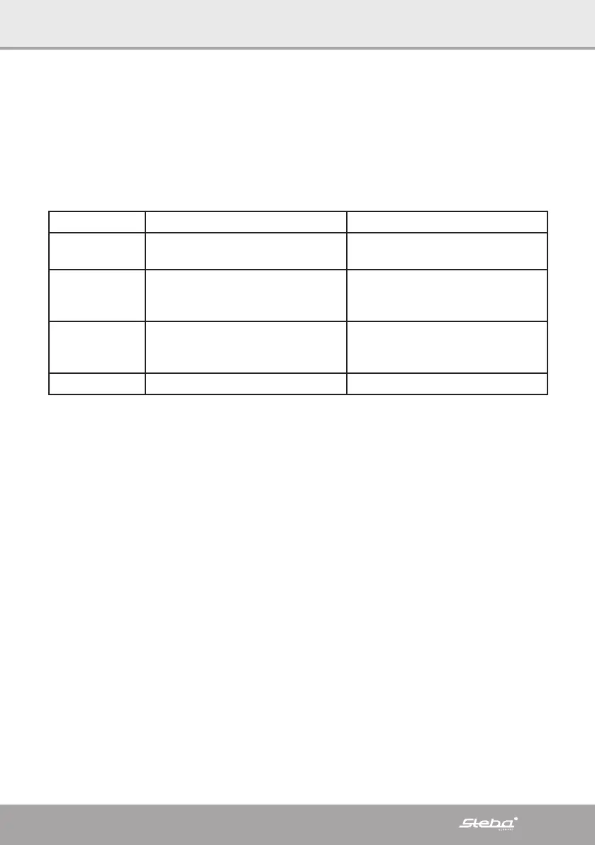 Thank you for buying this STEBA product. The following table will help you with pro-