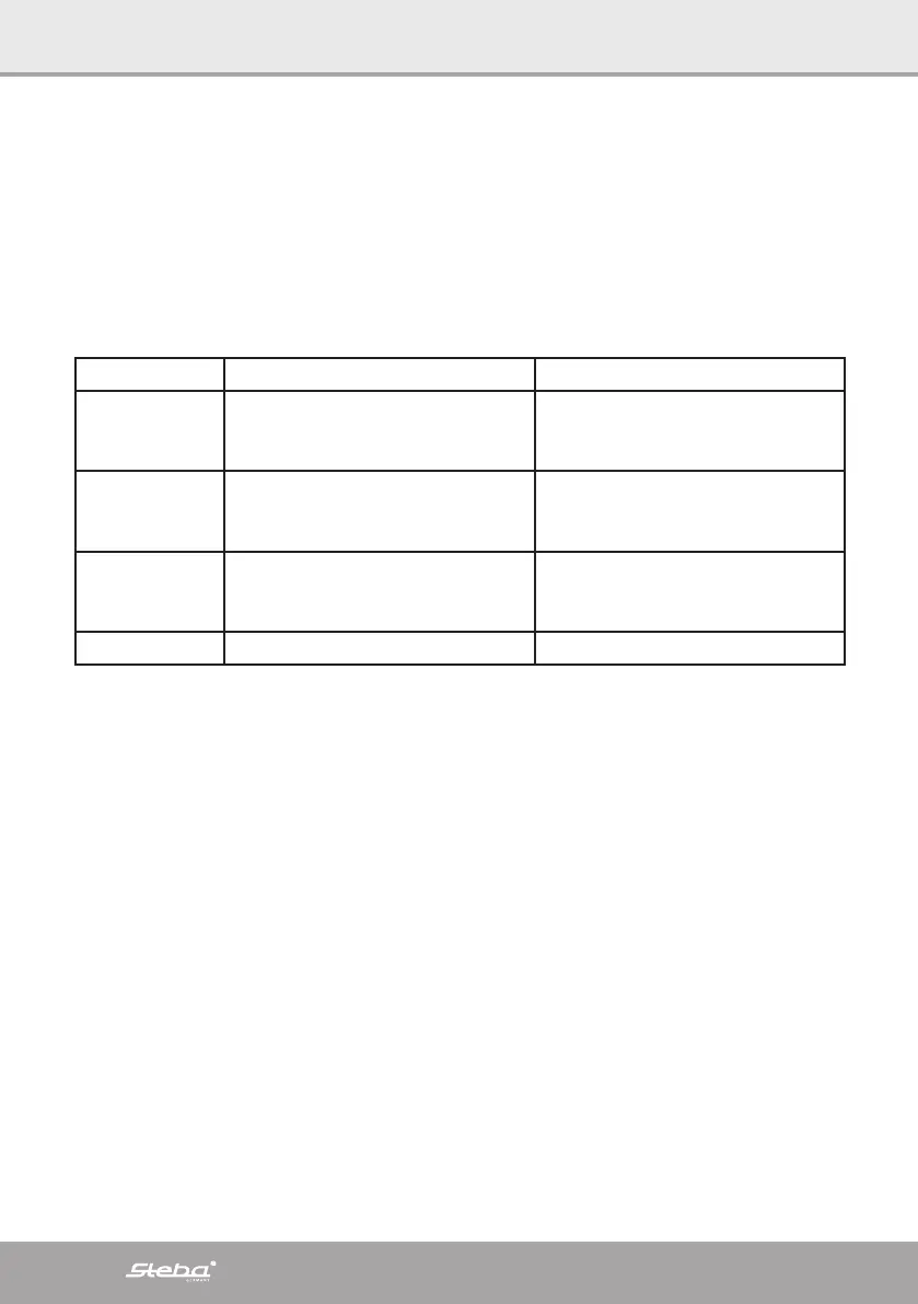 Merci d’avoir acheté un produit STEBA. Le tableau ci-dessous donne une assistance à