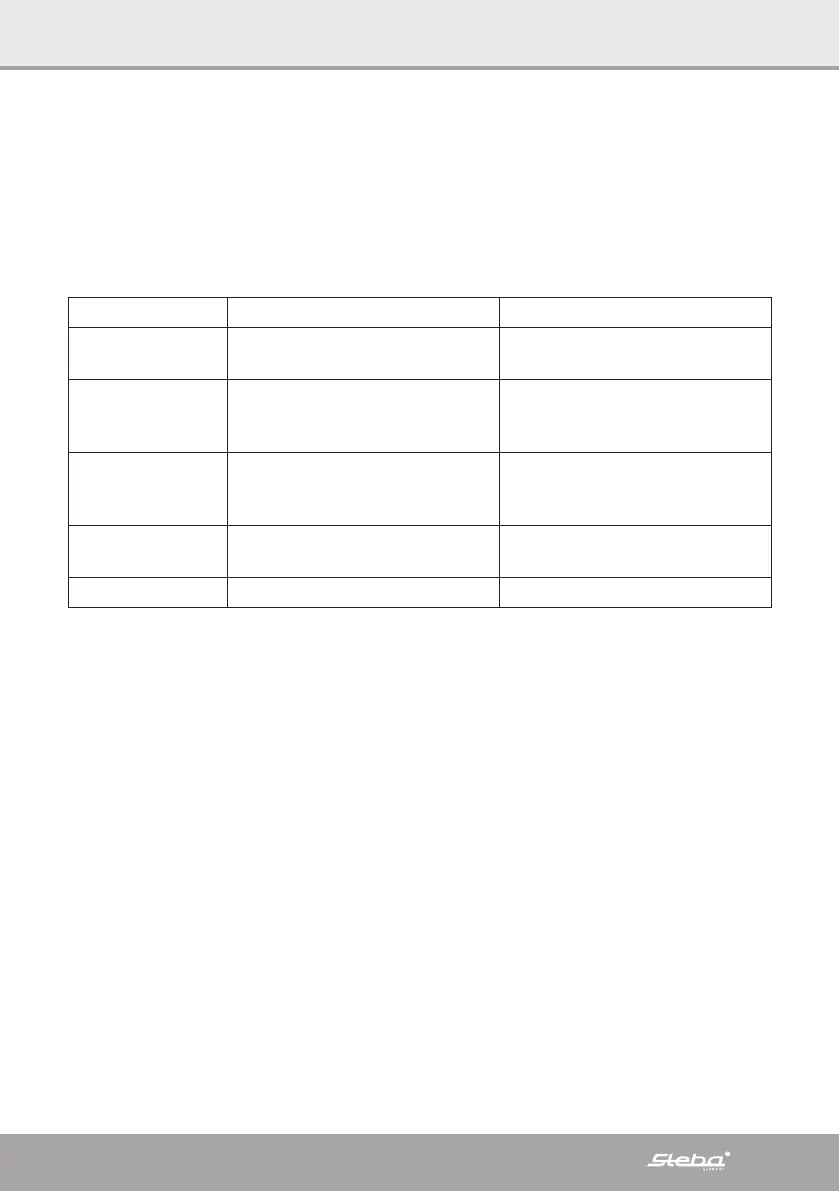Tak fordi du købte et produkt fra Steba. Tabellen nedenfor giver hjælp til løsning