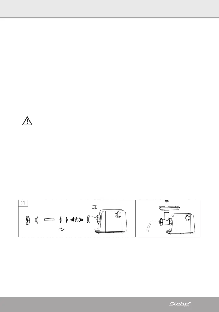 ∙ Place the desired sausage attachment onto the disc and fasten by using the threa-
