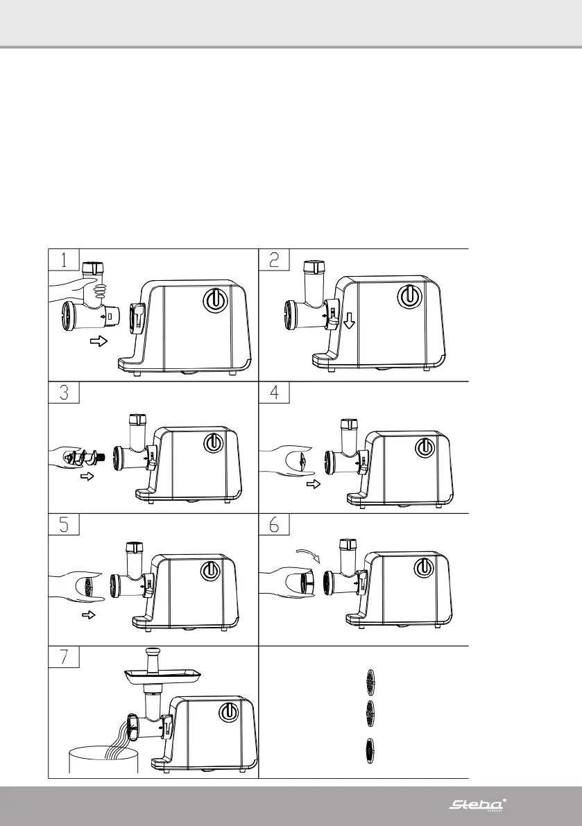 4. Fixez le plateau de remplissage. Doucement pressez la viande avec le poussoir