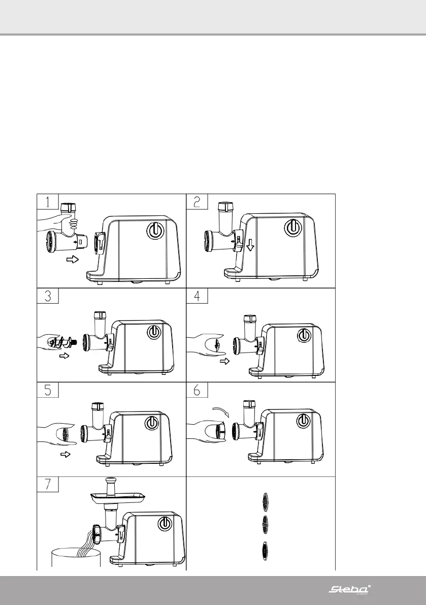 4. Bevestig de vullade. Met de stodger wordt het vlees voorzichtig in het wormhuis