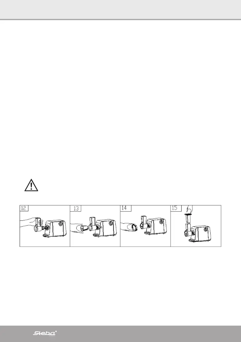 elepel, of u kunt het opzetstuk voor worstvulling gebruiken. Sluit vervolgens ook