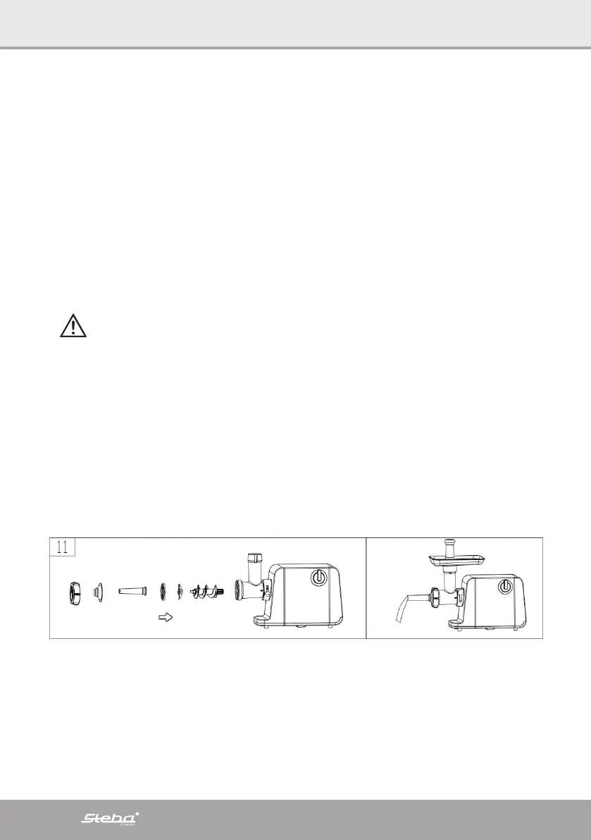 ∙ Den gewünschten Wurstfüll-Aufsatz vor die Lochscheibe setzen und mit dem Ge-