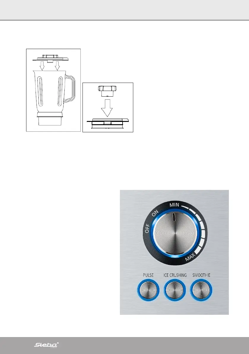 ∙ Lägg ingredienserna i kannan och sätt på locket. Stäng igen locket med mätglaset.