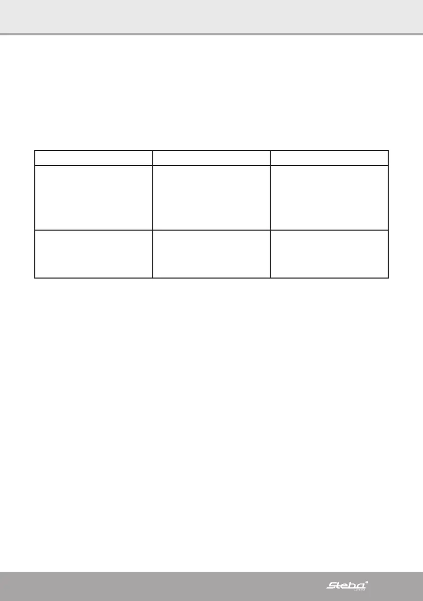 vielen Dank für den Kauf eines STEBA-Produktes. Nachfolgende Tabelle gibt Ihnen