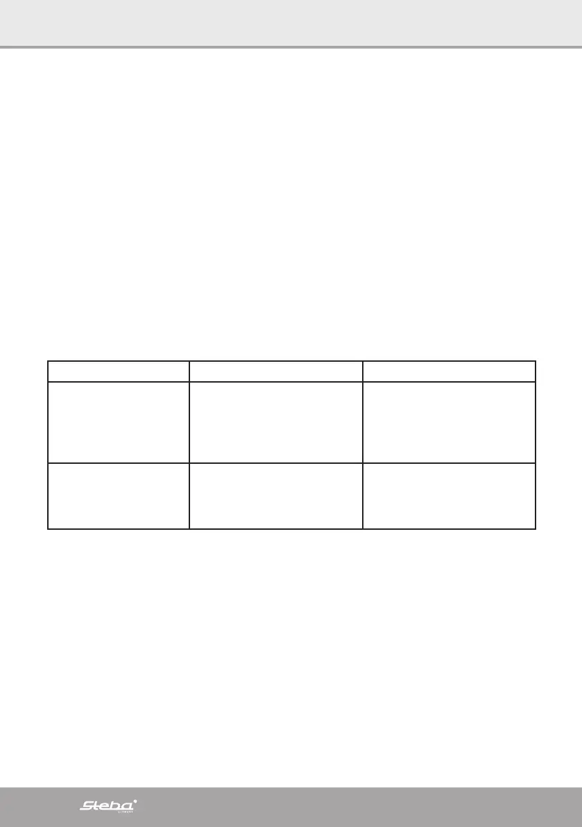 Thank you for buying this STEBA product. The following table will help you with pro-