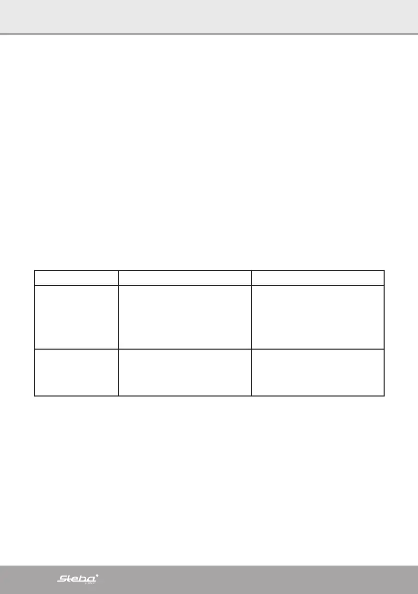 Merci d’avoir acheté un produit STEBA. Le tableau ci-dessous donne une assistance à